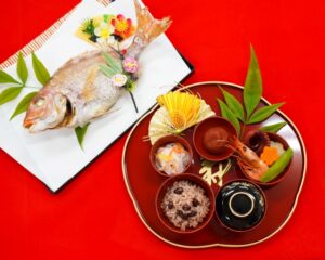 朱塗りの食器や尾頭付きの鯛 が売ってなく
