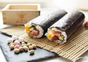 恵方巻をパイプみたいに繋いで、自分に